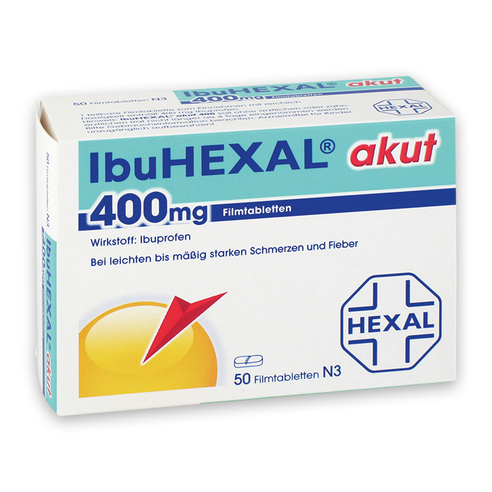 Tabletten, 50 StückBei leichten bis mäßig starken Schmerzen und Fieber. Wirkstoff: Ibuprofen